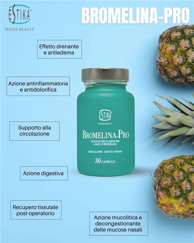 Integratori Bromelina pro € 42,00 Aggiungi al Carrello Condividi Facebook Twitter LinkedIn Descrizione BROMELINA-PRO600 mg in una sola capsula gastro-resistente.Agisce su 4 fronti principali: 🌿 Antinfiammatoria 💧 Drenante e antiedema 🌱 Digestiva 🌬️ Mucolitica